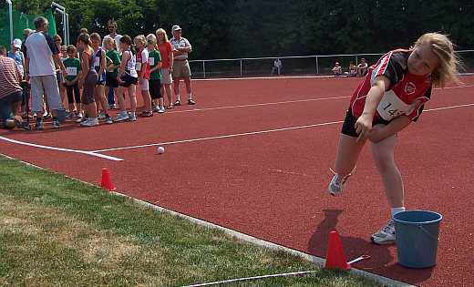 die im Schlagballwurf der C-Schülerinnen mit einem 30 Meter Wurf den ersten