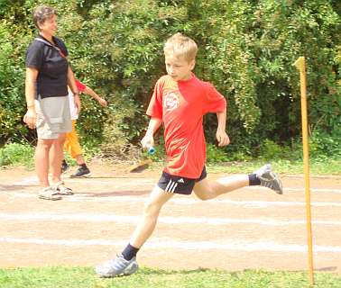 Bei dem Traditionssportfest, bei dem wieder große Schülerriegen am Start waren, reihte sich unser 10-jähriger Neuzugang Jonas Neumann erneut ganz "Vorne" in die Ergebnisliste ein. Mit 954 Punkten gewann er den Dreikampf seiner Altersklasse. An seine Leistungen vom Vortage konnte er aufgrund der „Naturanlage“ zwar nicht heran-kommen, überzeugte aber dennoch! 8,02 Sekunden über 50 Meter - 3,65 Meter im Weitsprung und 37 Meter im Ballwurf reichten zum Tagessieg.
