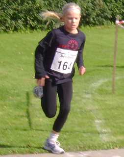 Nach der weiten (verspäteten) Anfahrt und einer viel zu knappen Aufwärmzeit legte die 8jährige Angelique Lehmann einen erstaunlicherweise hervorragenden 2,3km Lauf hin. |