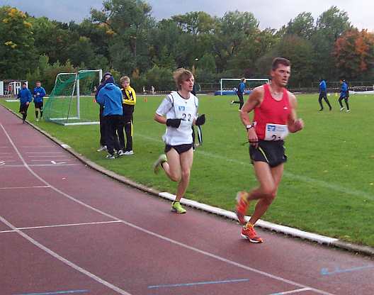 Nach mehrmonatiger Verletzungspause und abgelaufener Startsperre ging unser 37-jähriger Trainer Karsten Kappe nach seinem souveränen Wettkampfcomeback bei den 10 Kilometer Straßenlaufmeisterschaften des Kreis Goslar vor 2 Wochen an der Okertalsperre erstmals bei Meisterschaften wieder auf die Laubahn eines Leichtathletik-Stadions über die 10.000 Meter. Nach den Gesamtsiegen im Jahr 2006 (38:05 Min.) und 2007 Sein ernster Konkurrent, Patrick Pavel vom TSV Eintracht Wolfshagen, konnte ihm lediglich bis zur 5000 Meter-Marke Paroli bieten, riss ab dort aber Meter für Meter ab, sodass Karsten im Ziel nach 38:03 Minuten mit gut 300 Meter Vorsprung den Gesamtsieg für sich entscheiden konnte. |