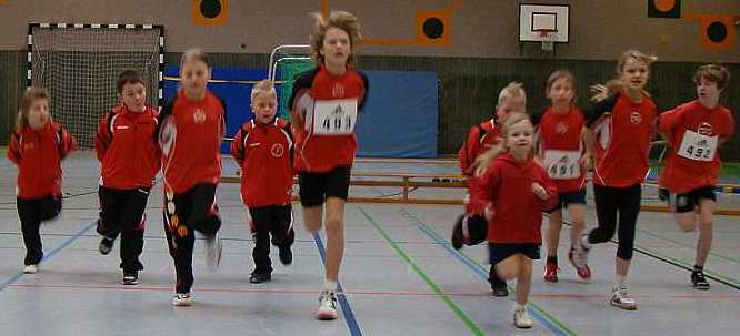 Bei den 2 mal 40 Meter Sprintstrecken, die in der Zeitaddition die Platzierungen ausmachten, beherrschten bei den Doppeljahrgängen der C-Schülerinnen und Schüler,