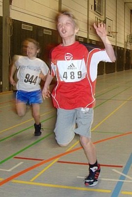 Jonas der seinen Vorlauf mit 6,72 Sekunden klar für sich entscheiden konnte, setzte im Finale mit 6,65 noch eine Schippe drauf und konnte sich ganz seines Vorbildes des Sprintweltrekordhalters Usain Bolt aus Jamaika, sogar vor der Ziellinie schon die Siegespose erlauben.