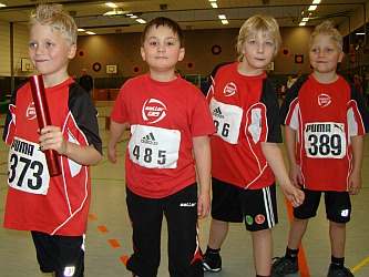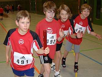 Bei den anschließenden Staffelläufen über jeweils eine Hallenrunde, hielt es die Zuschauer in der voll besetzten Sporthalle nicht mehr auf ihren Plätzen. Die jüngsten D-Schüler des LAV 07 sorgten mit Julius und Johannes Kappe (02) sowie Noah Deisl (01) und Timon Neumann (00) gleich für die erste Zielfotoentscheidung mit den Konkurrenten vom MTV Jahn Schladen.