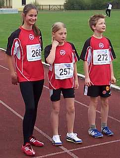 an die Startlinie über die zwei Stadionrunden. Vom LAV waren hier Franziska, Laura und Jonas dabei. |