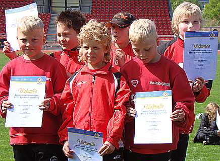 Alle durften das großzügige Siegerpodest betreten und erhielten während der Stadiondurchsagen ihre Siegerurkunden |