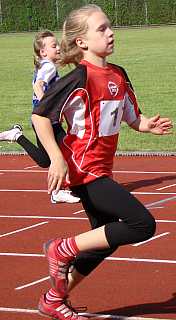 Laura, die mit Franziska den gleichen Lauf über 75 Meter bestritt, profitierte auf der Nebenbahn von ihrer Vereinskameradin.