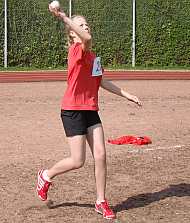 „schlechten“ Ballwurfergebnis von 26,50 Meter sehr enttäuscht. Dies war erneut die beste Leistung unter ihren Vereinskameradinnen. Ihre gewohnten Weiten von über 30 Meter blieben des Windes wegen, leider an diesem Tag verwehrt.