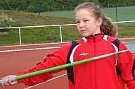 Die 12-jährige Schülerin Sabrina Höhmann erzielte bei ihrem Sperrwurf-Wettkampfdebüt |