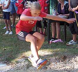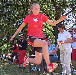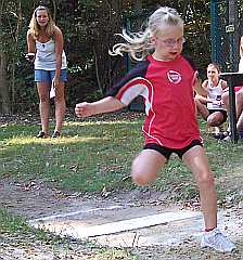 Zunächst mussten sich im Dreikampf unsere jungen Nachwuchsathleten aber mit den Natursportanlagen auf dem Hornburger Iberg vertraut machen. Die Bedingungen waren in die Urzeit der Leichtathletik zurückgesetzt. Anlaufen in einer Erdrinne und der Absprung von einem eingelassenen Holzbrett beim Weitsprung, sowie die Sprintläufe auf Naturrasen mit Baumwurzeln und Bodenvertiefungen, waren für alle ungewohnt. |