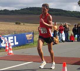 Für Karsten war schnell ein weiteres Handicap entstanden. Zwei etwa gleichschnelle Läufer hängten sich unangenehm an seine Fersen. Da sie völlig unbekannt waren, eine gefährliche Sache, zumal sich Karsten nicht als Tempomacher kaputt machen wollte. Nach der zweiten Runde zog er deshalb kurz das Tempo an, um zu schauen, ob sie mithalten konnten. Ab dort war es ein Alleingang gegen die Uhr. Nach 22:13 Minuten war der Gesamtsieg perfekt. |