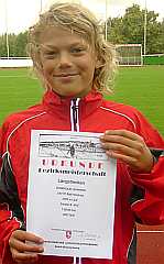 Einen Tag später zeigte Dominique im Schülerlauf der M 12/13 über die 2000 Meter ein ebenfalls sehr starkes Rennen. |