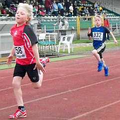 Jonas Neumann siegte zunächst deutlich im 75 Meter Sprint