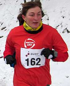 Silke lief am Anfang sehr vorsichtig um sich auf den glatten Untergrund einzustellen. Zum Schluß hin gab sie immer mehr "Gas", wurde immer schneller und überholte kurz vor dem Ziel noch ihre Mitbewerberin um den Klassensieg der W40! |