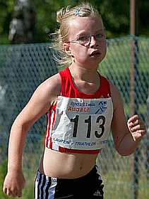Merle gelang mit einer raffinierten Renntaktik nicht nur der Altersklassensieg, sondern auch der zweite Gesamtplatz hinter Annika Riedel. In der ersten Runde lauerte sie noch auf dem vierten Platz und ließ die anderen austoben. In der zweiten Runde ergriff sie dann die Initiative, indem sie sich zunächst auf Platz drei schob und dann im richtigen Moment am Anstieg ihre Stärke ausnutzte und einen entscheidenden Angriff einsetzte, dem Greta Schnabel und Julia Richter nicht folgen konnten. 4:44,0 Minuten benötige sie für die zwei Runden und lag damit nur 33 Sekunden hinter der zwei Jahre älteren Schülerin Annika.