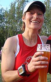 Beim 5,4 km langen Jedermannlauf waren wir mit Sabine und Kai vertreten, der sich kurzfristig noch nachgemeldet hatte. Da Sabine momentan umfangsbetont trainiert, nahm sie zusätzlich sogar den eine Stunde später stattfindenden Hauptlauf in Angriff. Obwohl Sabine seit längerem keinen Wettkampf mehr bestritten hatte, lief sie ein gutes Rennen. Gesamtsieg bei den Frauen und durch eine Zeit von 24:46,9 Minuten eine zeitliche Verbesserung von über zwei Minuten hieß es für sie am Ende schließlich auf der gefürchteten Strecke, die gerade zu Beginn durch den permanenten Anstieg sehr kräfteraubend ist.