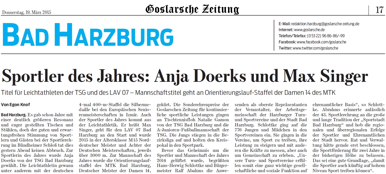07.02. Vorschau LM und BM 28.04. Sportlererhrung des KSB Goslar